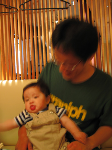 夜は伊藤夫妻と、新谷君と、中村君で食事。伊藤君が結婚したという事実は、前回伊藤夫妻と会ってからもいまひとつ飲み込めなかったのだが、今回せがれ殿を見て初めて実感できた。御歳7ヶ月のせがれ殿には「はじめまして、shと申します。」と硬めのあいさつをしてみた。